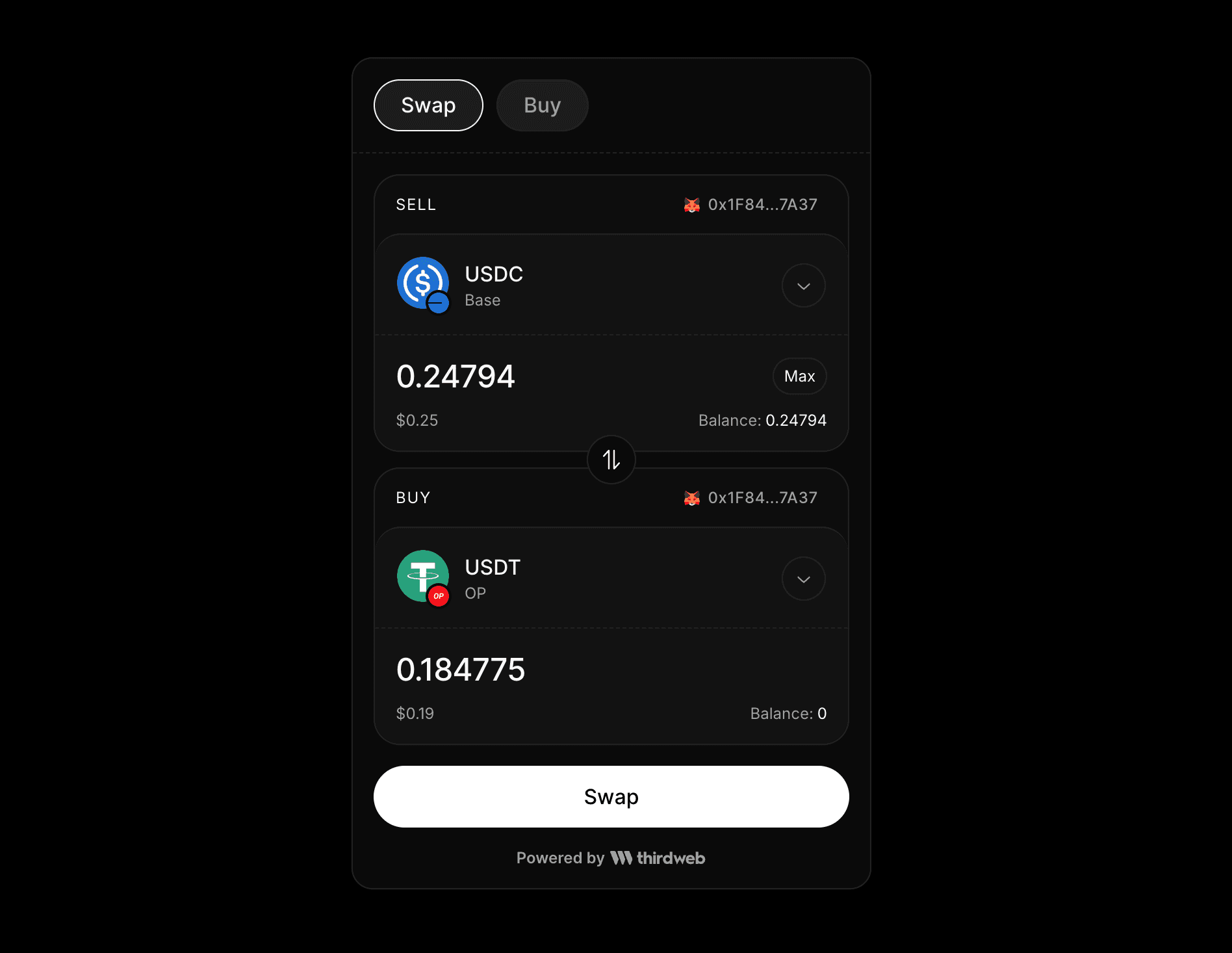Specify the default token to be selected in the "Buy" tab. If not specified, the native token of the selected chain will be selected.